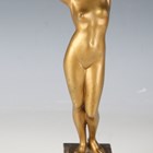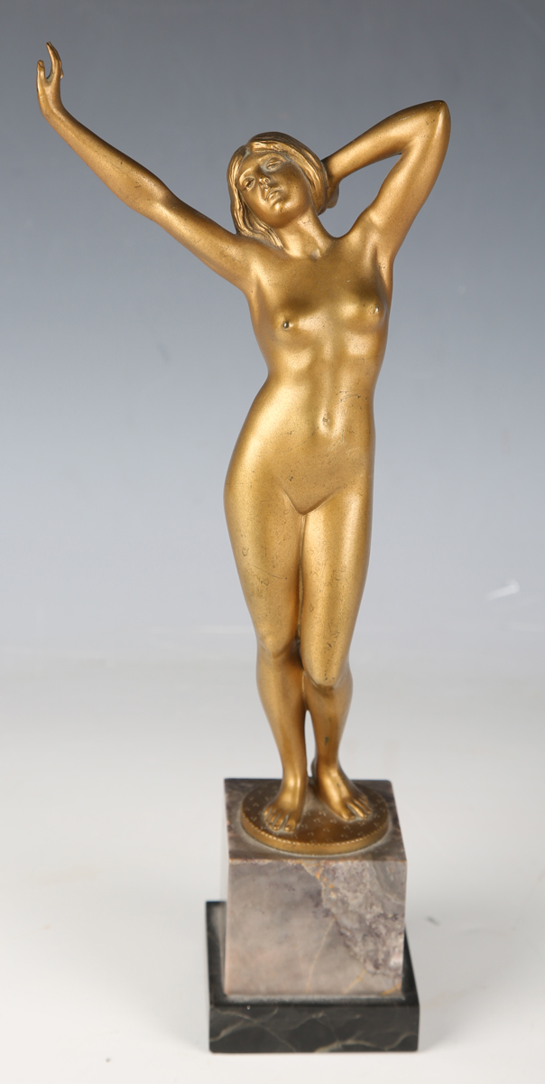 Percimer Rudolfi - 'Awakening', an Art Nouveau gilt bronze figure of a nude maiden, bearing cast signature 'Rudolfi', raised on a marble plinth, height 33.8cm.