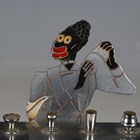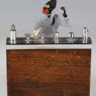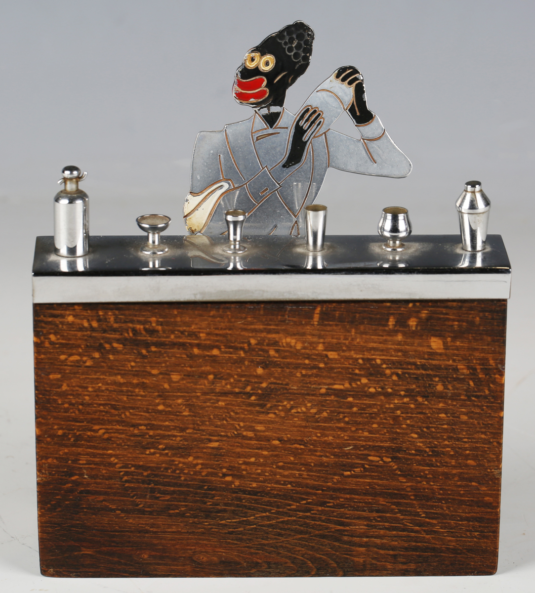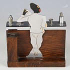 An Art Deco French novelty 'Bartender' cigarette holder, probably by Sudre, modelled as a bartender with cocktail shaker, the bar with sliding top revealing cigarette apertures, width 12.5cm.