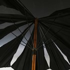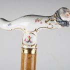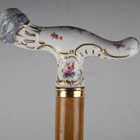 A 19th century porcelain handled parasol, probably Meissen, mounted with a gold collar, detailed '14K', length 70cm.