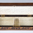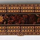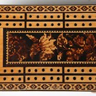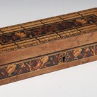A Victorian Tunbridge ware rectangular box, the lid designed for cribbage, the sides with a mosaic band of flowers, width 25cm.