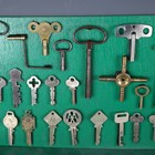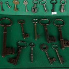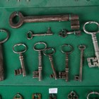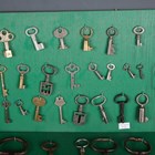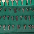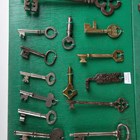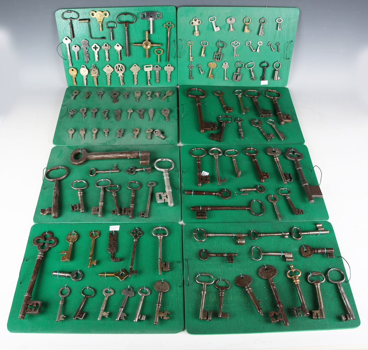 A good collection of 17th century and later keys, one detailed 'Segts Mess Back Door', mostly mounted to display boards.