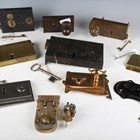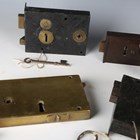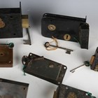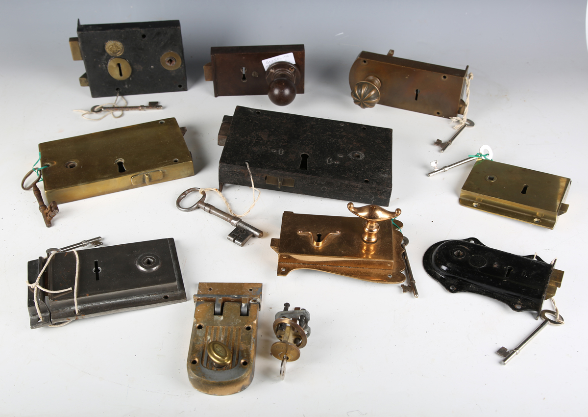 A collection of mainly 19th century rim locks, including examples by Chubb, Hobbs and a Bakelite example.