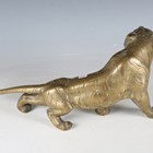 An early 20th century cast bronze model of a roaring tiger, probably Japanese, length 40cm.