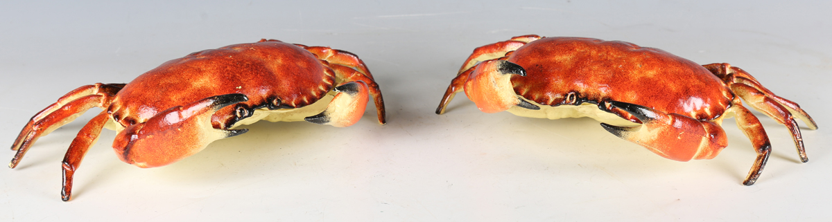 A pair of modern cold painted cast iron novelty boxes, each in the form of a crab, width 33cm.