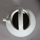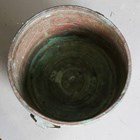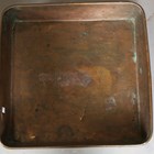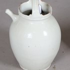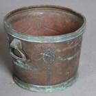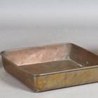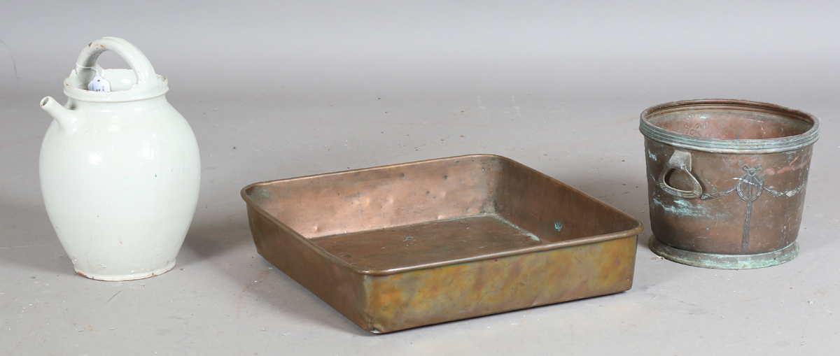 An early 20th century French white glazed earthenware oil jar, height 37cm, together with an early 20th century copper jardinière and a rectangular copper pan, width 46cm.