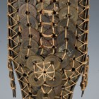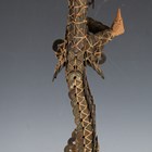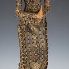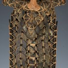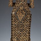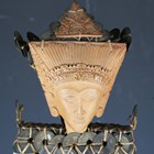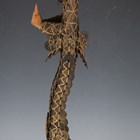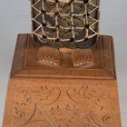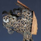 A 20th century Balinese kepeng coin figure with carved wooden face, hands and base, height 68cm.