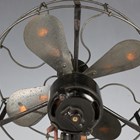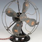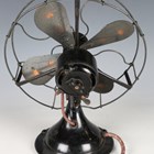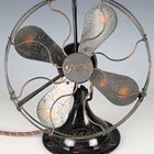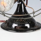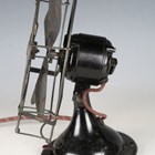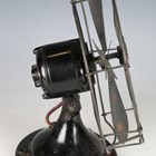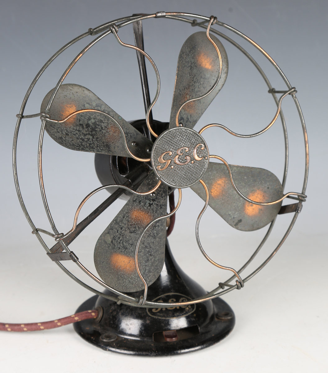An early 20th century G.E.C. black enamelled desk fan with adjustable stem, height 32cm.