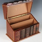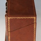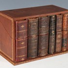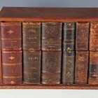 A 20th century novelty leather-covered box, the front formed from five 19th century French book spines, width 32cm.