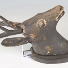 A 19th century North European carved and painted softwood folk art model of a deer's head, height 27cm.
