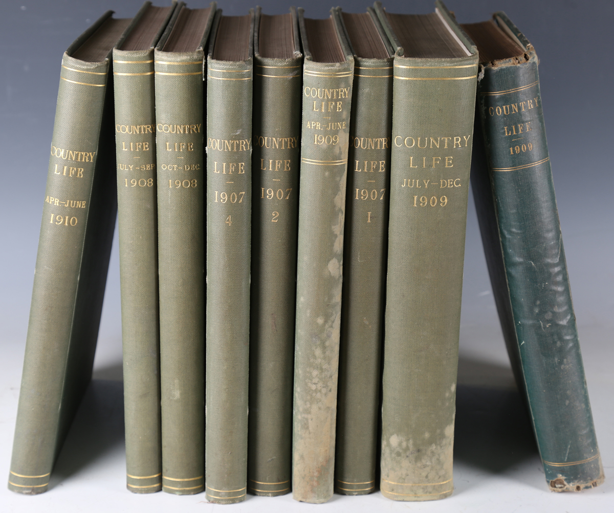 A collection of Edwardian and later canvas-bound Country Life magazines.