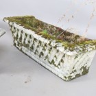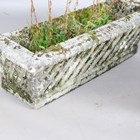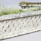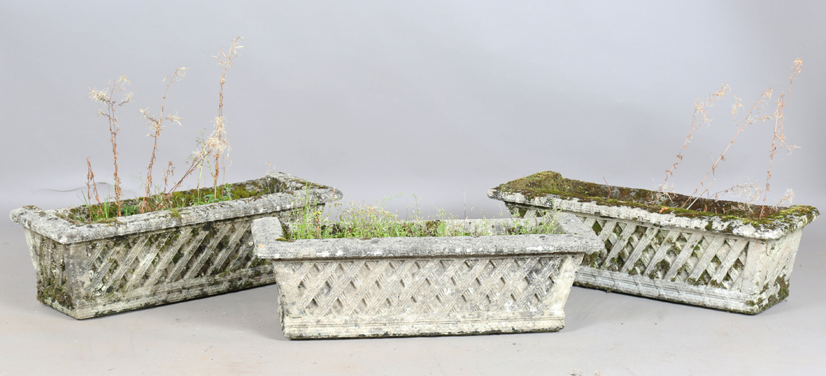 A set of three Haddonstone cast stone garden planters of rectangular basket weave form, height 27cm, width 87cm, depth 30cm.