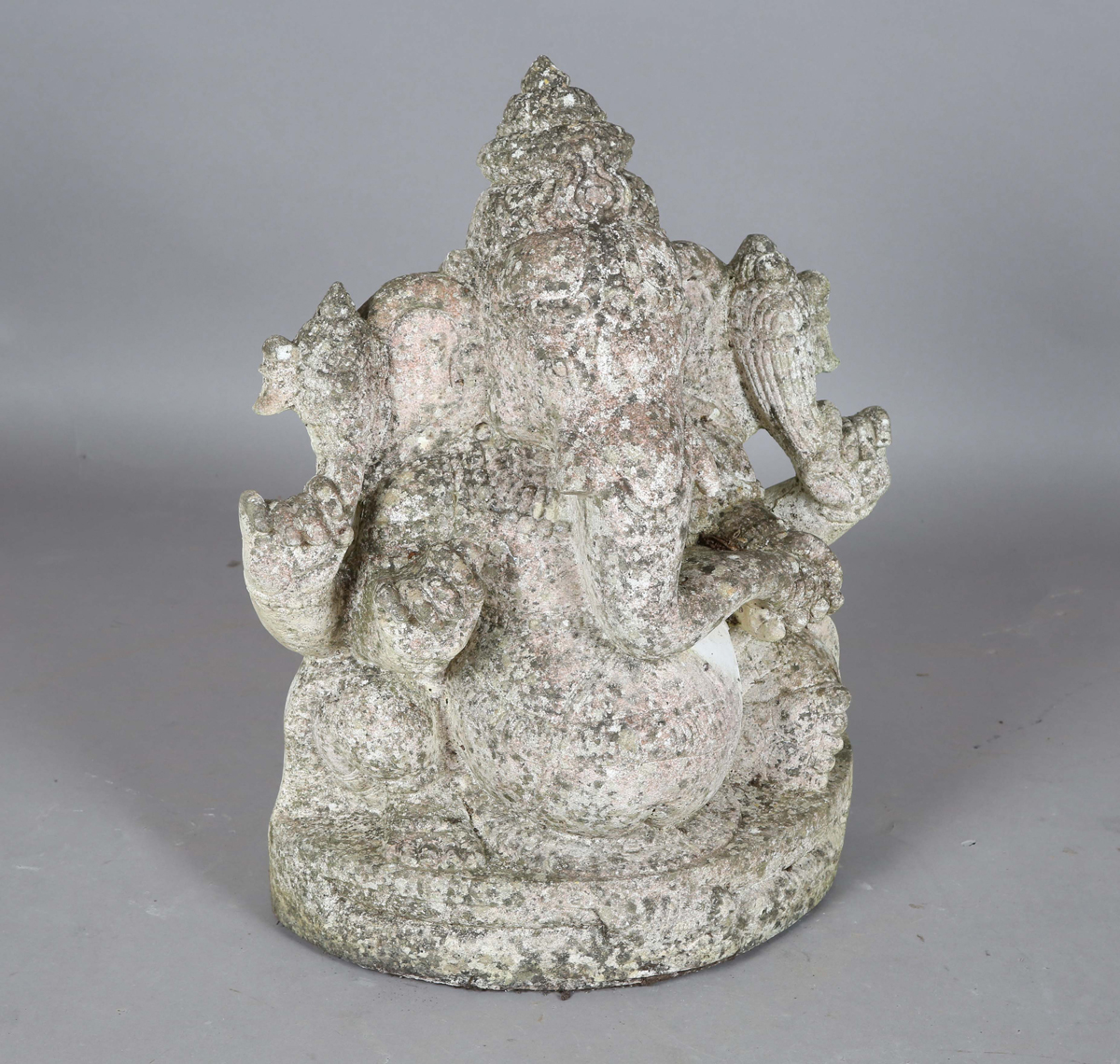 A late 20th century cast stone garden figure of a seated Ganesh, height 58cm, width 48cm.