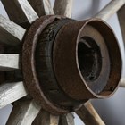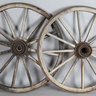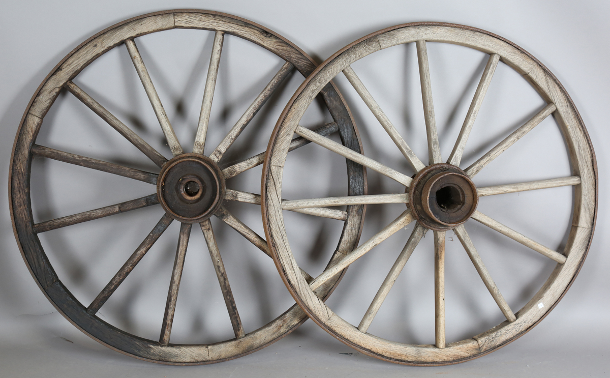 A pair of large iron mounted wagon wheels, diameter 133cm.
