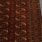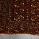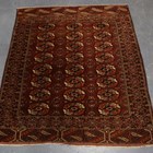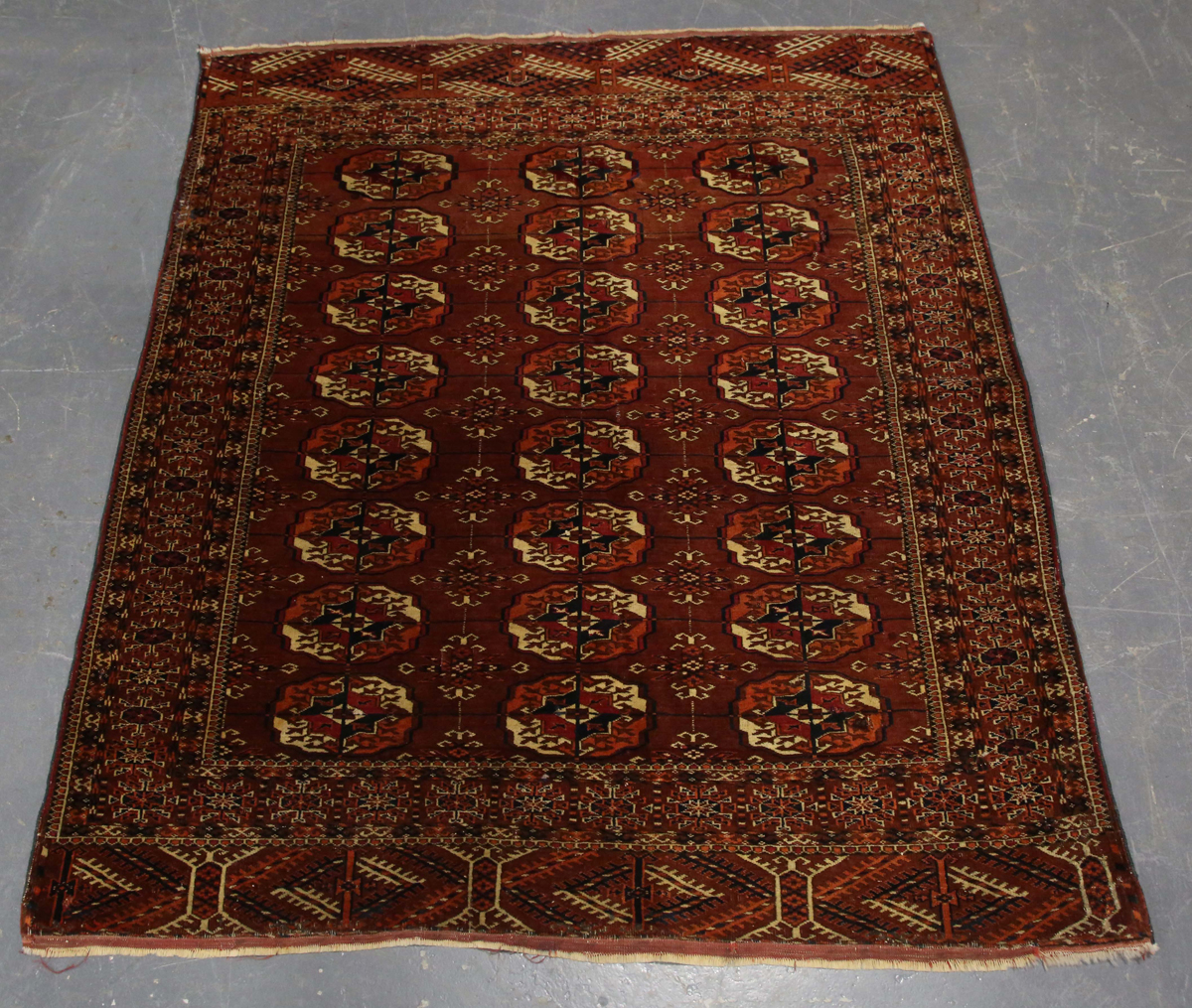 A Tekke rug, West Turkestan, late 19th century, the pale claret field with overall guls, within a sunburst gul border, 142cm x 124cm.