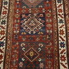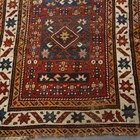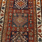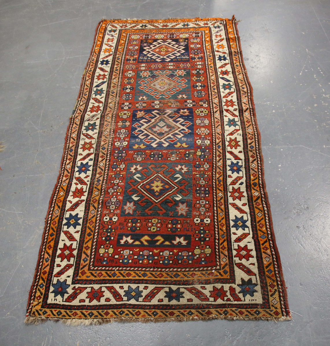 A Kazak kelleh, West Caucasus, early 20th century, the polychrome field with four hooked medallions, within an ivory border, 245cm x 107cm.