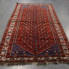 A Kurdish carpet, early 20th century, the red field with a central stem issuing flowering branches, within an ivory flowerhead and vine border, 293cm x 175cm.