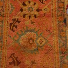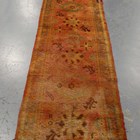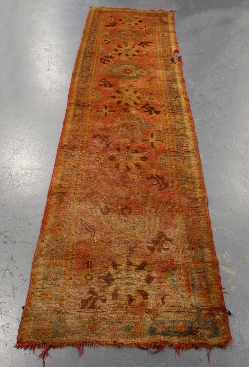 An Ushak runner, West Anatolia, late 19th century, the pink field with bold palmettes, within a flowering vine border, 353cm x 89cm.