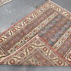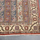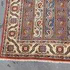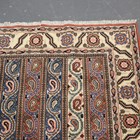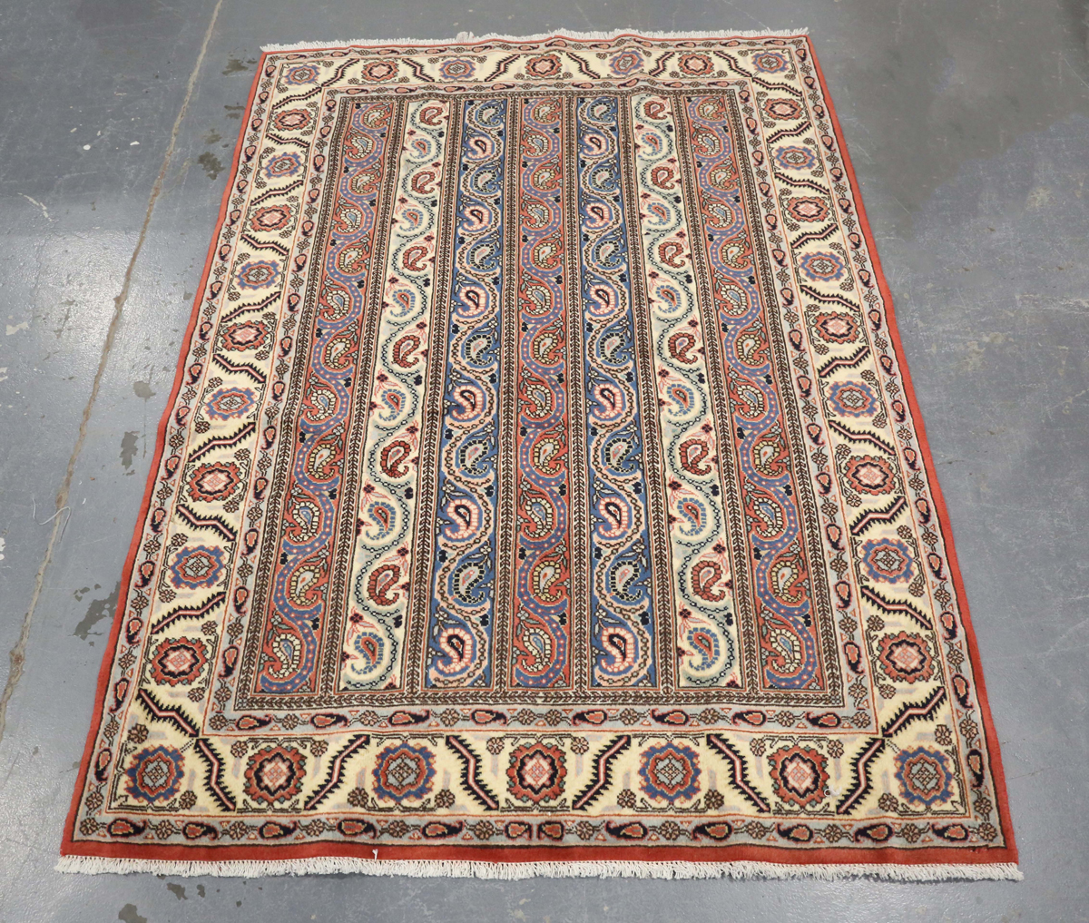 A Qum rug, North Persia, late 20th century, the striped polychrome field enclosing columns of boteh, within a palmette and leaf border, 198cm x 140cm.