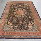 A large Mahal carpet, North-west Persia, late 20th century, the charcoal field with a shaped medallion supported by palmettes, within a terracotta scrolling vine and palmette border, 485cm x 312cm.