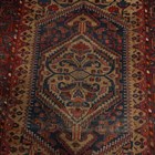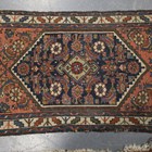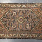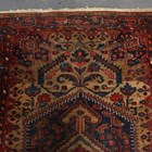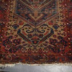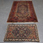 A Hamadan rug, North-west Persia, early 20th century, the pale brown field with a large floral reserve, within a blue stylized pinecone border, 217cm x 134cm, together with another smaller Persian rug, 115cm x 71cm.