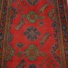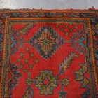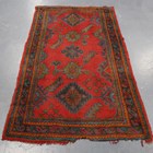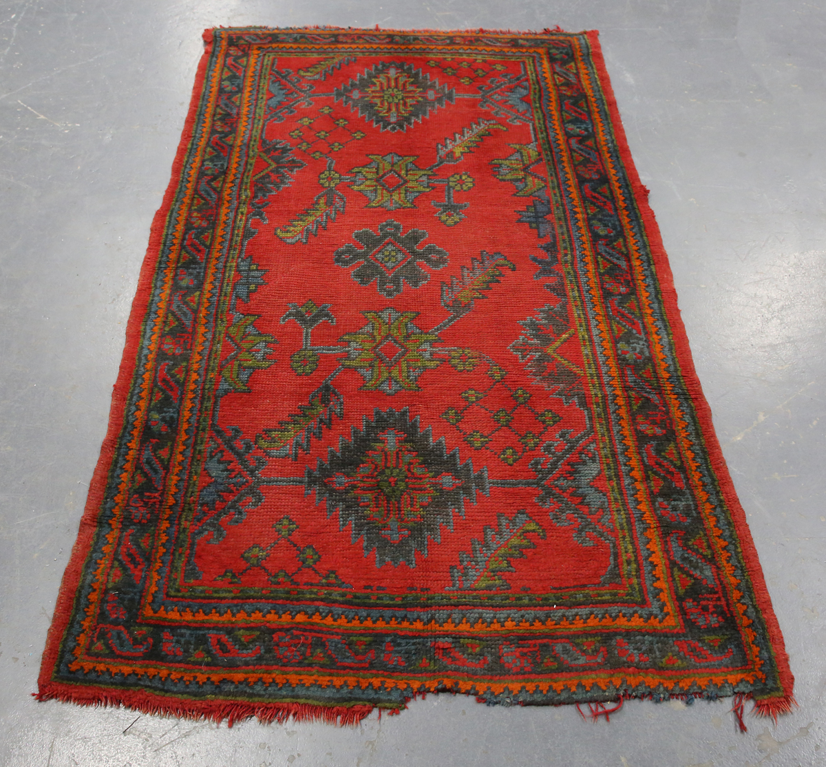 An Ushak 'Old Turkey' rug, West Anatolia, early 20th century, the deep red field with stepped lozenges and leaves, within a curled leaf border, 213cm x 123cm.