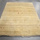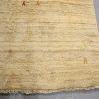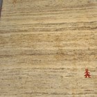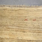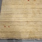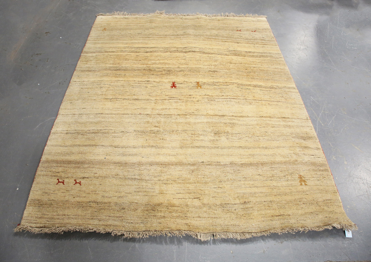 A Persian gabbeh rug, modern, the shaded oatmeal field sparsely decorated with figures, 225cm x 186cm.