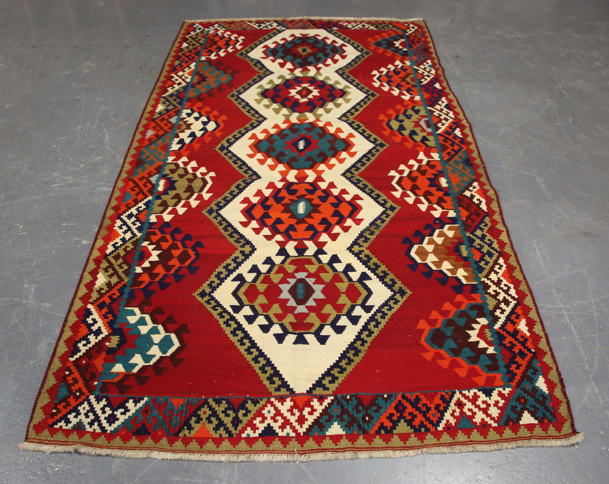 A Ghashghai kilim rug, South-west Persia, the geometric polychrome field within a complimentary border, 280cm x 162cm.