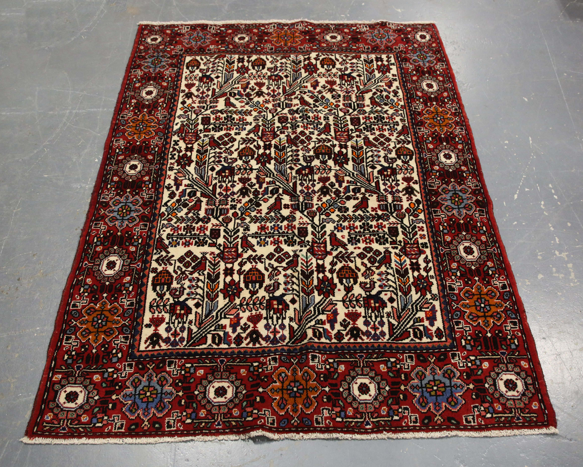 A Rudbar rug, North Persia, late 20th century, the ivory field with an overall floral lattice, within a red palmette border, 200cm x 138cm.