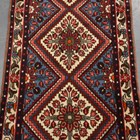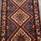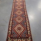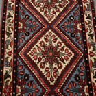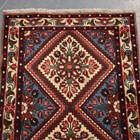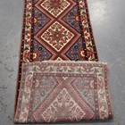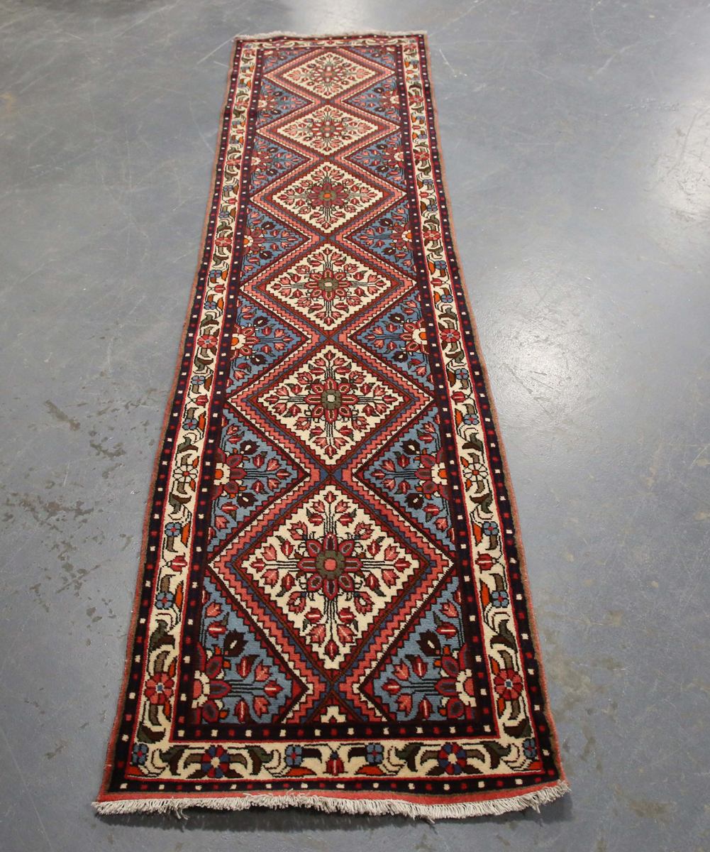 A Rudbar runner, North Persia, late 20th century, the blue field with a column of six ivory lozenge medallions, within a complimentary border, 303cm x 72cm.