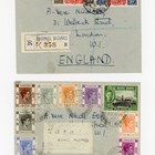 World stamps in three stamp albums with two 1d blacks used, 1d reds and later 2d blues, Hong Kong, plus postal history with group of 1859-63 covers from India with three re-addressed and 1d red added (Indian stamps have perforations cut off).