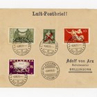 Switzerland airmail in album, including August 1919 with 50 cent overprinted air stamp, November 1929 Zeppelin flight cover, 1930s airmail stamps, 1942 National Fete miniature sheet used, 1945 War Relief Fund miniature sheet used (60 plus covers).