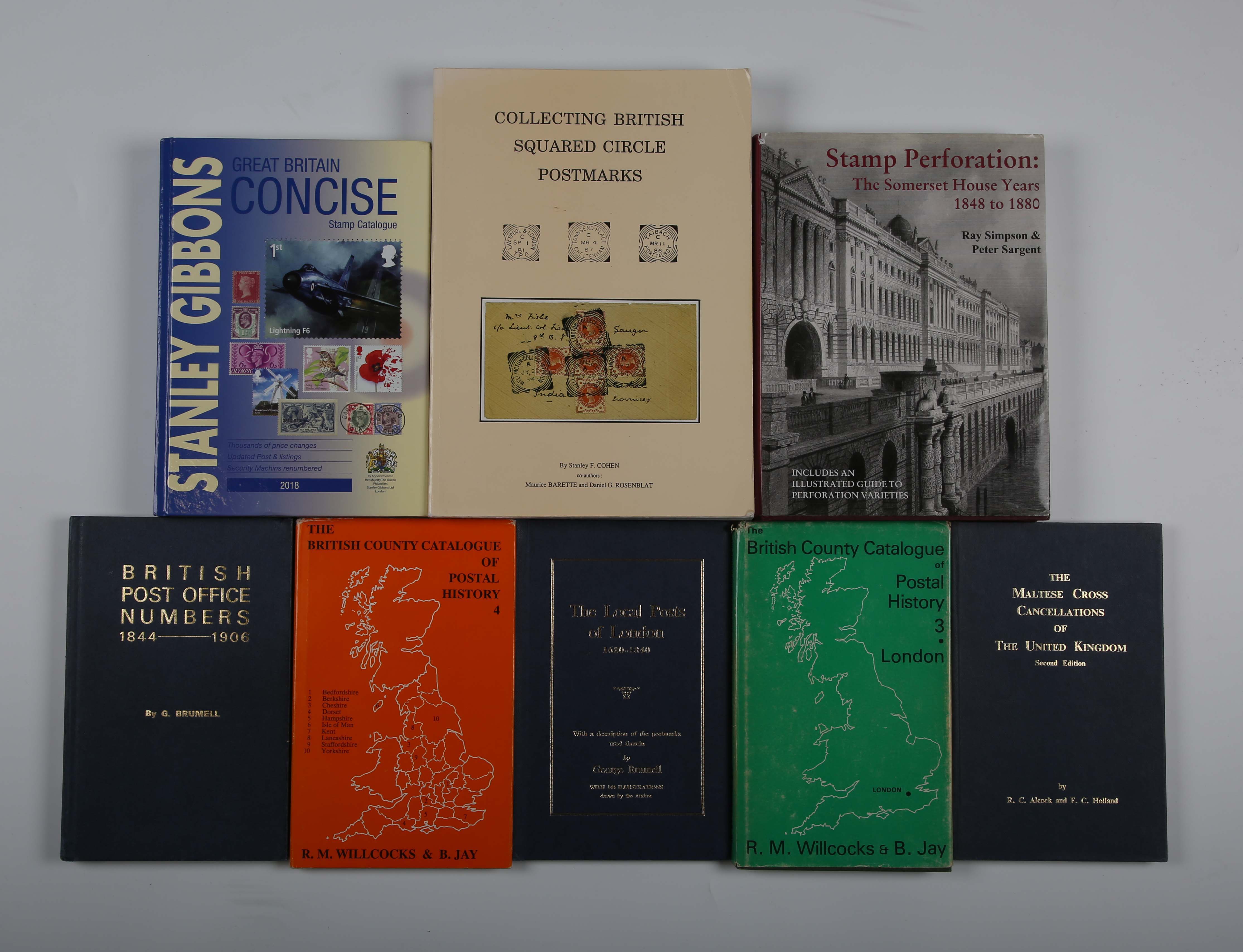 Philatelic Literature, Great Britain postmarks, plating of 1d reds Lichfield 'Guide Lines to the 1d 'Black', Cohen 'Squared Circle Postmarks', and Mackay 'Scottish postmarks' (box).