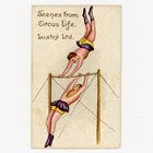 A Lusby Limited ‘Scenes from Circus Life’ cigarette card circa 1900 of trapeze acrobats.