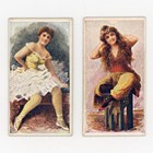 A group of 6 cigarette cards comprising 1 Johnson ‘Flags and Flower Girls’, 1 Daniel’s ‘Flags and Flower Girls’, 1 J & F Bell ‘Beauties (Tobacco Leaf back)’, 1 J & F Bell ‘Beauties (Scotia back)’, 1 extra large size Muratti ‘Actresses and Beauties (Green Corinthian Column frame, Neb-Ka back)’ and 1 Muratti ‘Actresses and Beauties (Brown and Yellow Ornamental frame, Neb-ka back)’.