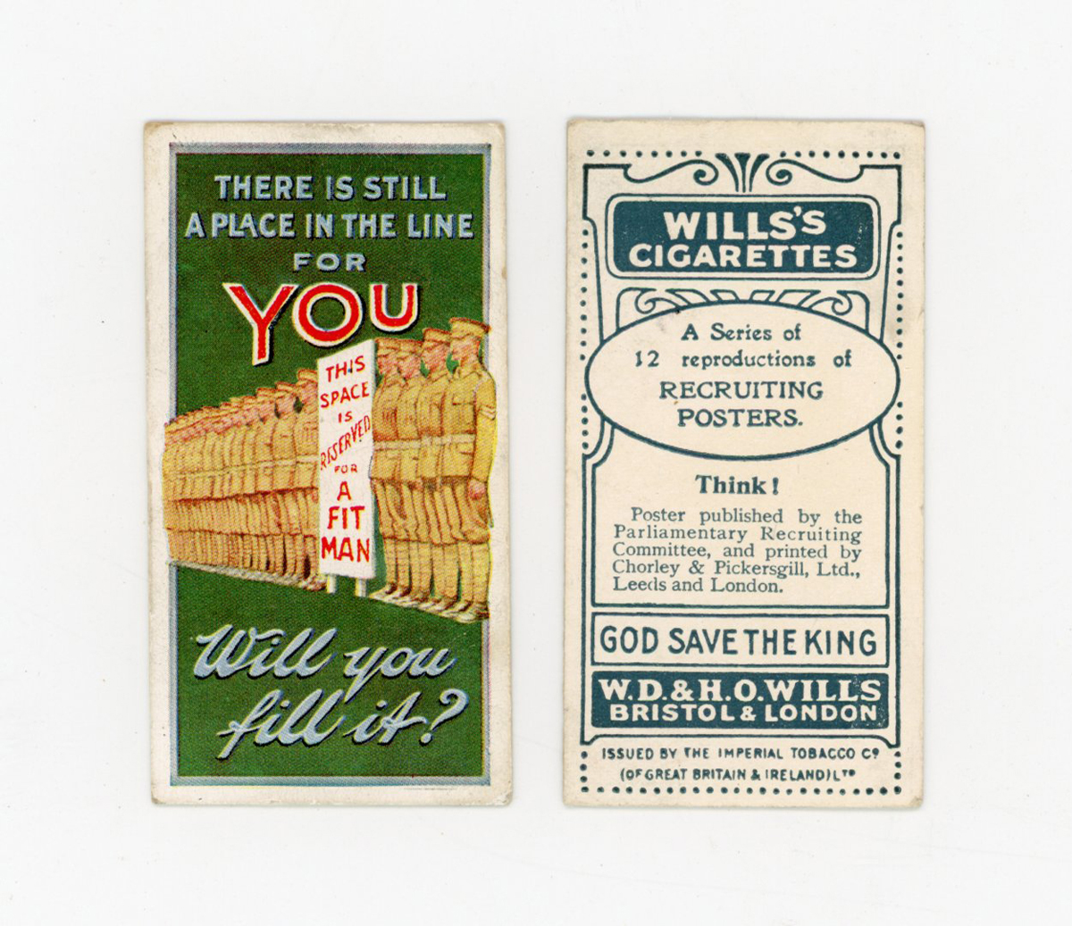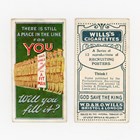 Four albums of cigarette and trade cards, including 15 Adkin ‘Notabilities’, a set of 12 Wills ‘Recruiting Posters’, 48 A & BC Gum ‘Footballers (Football Quiz)’, 7 British American Tobacco (B.A.T.) ‘Butterflies (Girls)’, and various odds.