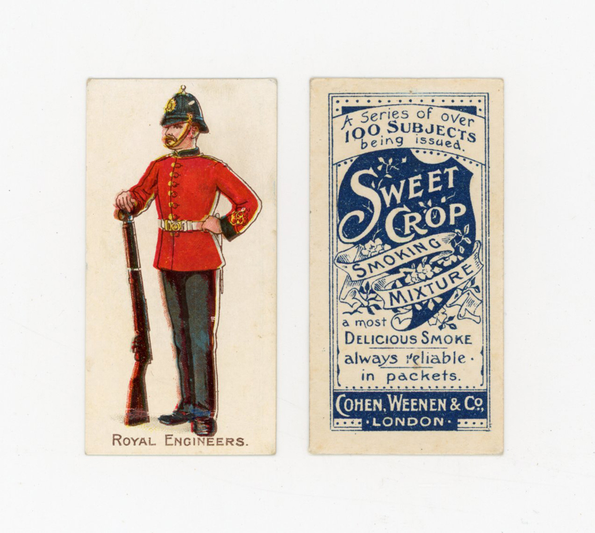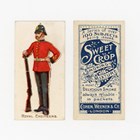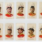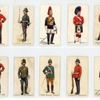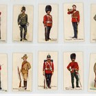 Three albums of cigarette and trade cards, including a set of 25 Singleton & Cole ‘Bonzo Series’, a set of 48 Brooke Bond Canadian issue ‘Animals of North America (Roland)’, a set of 25 Mitcham Food ‘Motor Racing’, 31 Primrose Sweets ‘Popeye’, 15 Cohen & Weenen ‘Home & Colonial Regiments (100 back)’, 5 Cohen and Weenen ‘Home & Colonial Regiments (250 back)’, and 27 Cohen & Weenen ‘Boer War Celebrities (100 back)’ including some duplicates.