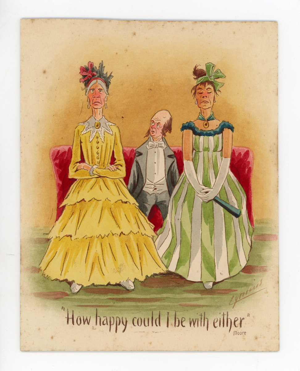 An original watercolour and ink by ‘Cynicus’ [Martin Anderson] ‘How happy could I be with either’, signed, 21.5cm x 17cm, together with another watercolour and ink by Murdock Stimpson.