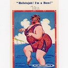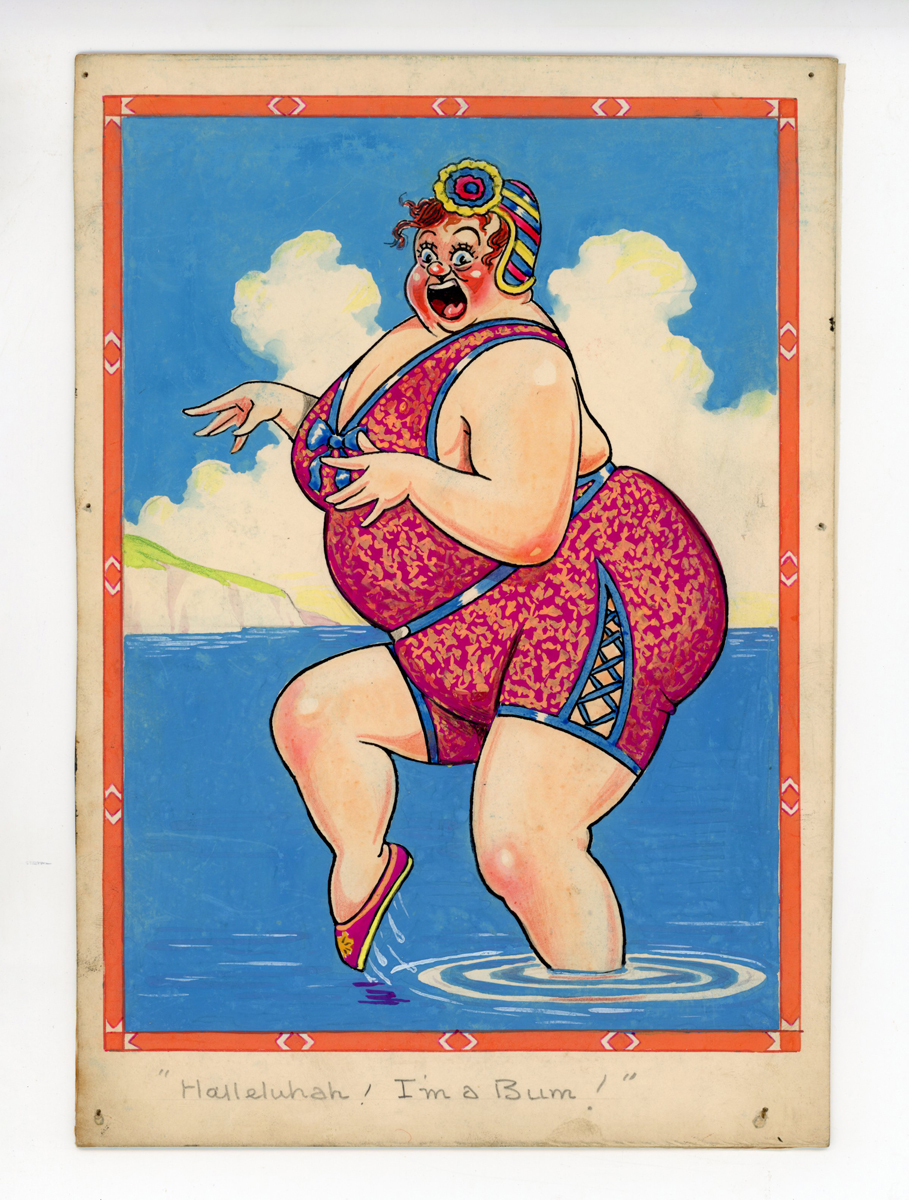 An original watercolour and ink by Dudley Graham Buxton for the postcard ‘Hallelujah! I’m a Bum’, 24cm x 17cm, together with the finished postcard published by Inter-Art.