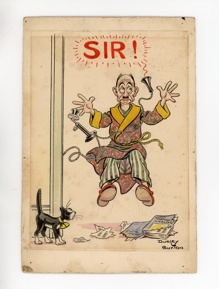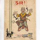 An original watercolour and ink by Dudley Graham Buxton for a postcard ‘SIR!’, signed, 24.5cm x 16.5cm.