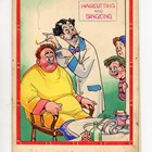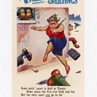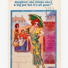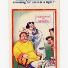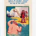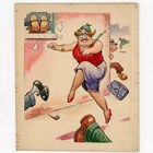 An original watercolour and ink by Dudley Graham Buxton for the postcard ‘You’ll be alright, mister, there’s a noodist colony on top of the cliff!’, 22.5 x 16.5cm, together with three further postcard designs by the same hand, and the finished postcards for each.