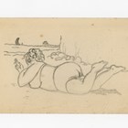 An original watercolour and ink by Donald McGill for a postcard, 10cm x 16.5cm, together with a pencil drawing attributed to McGill.
