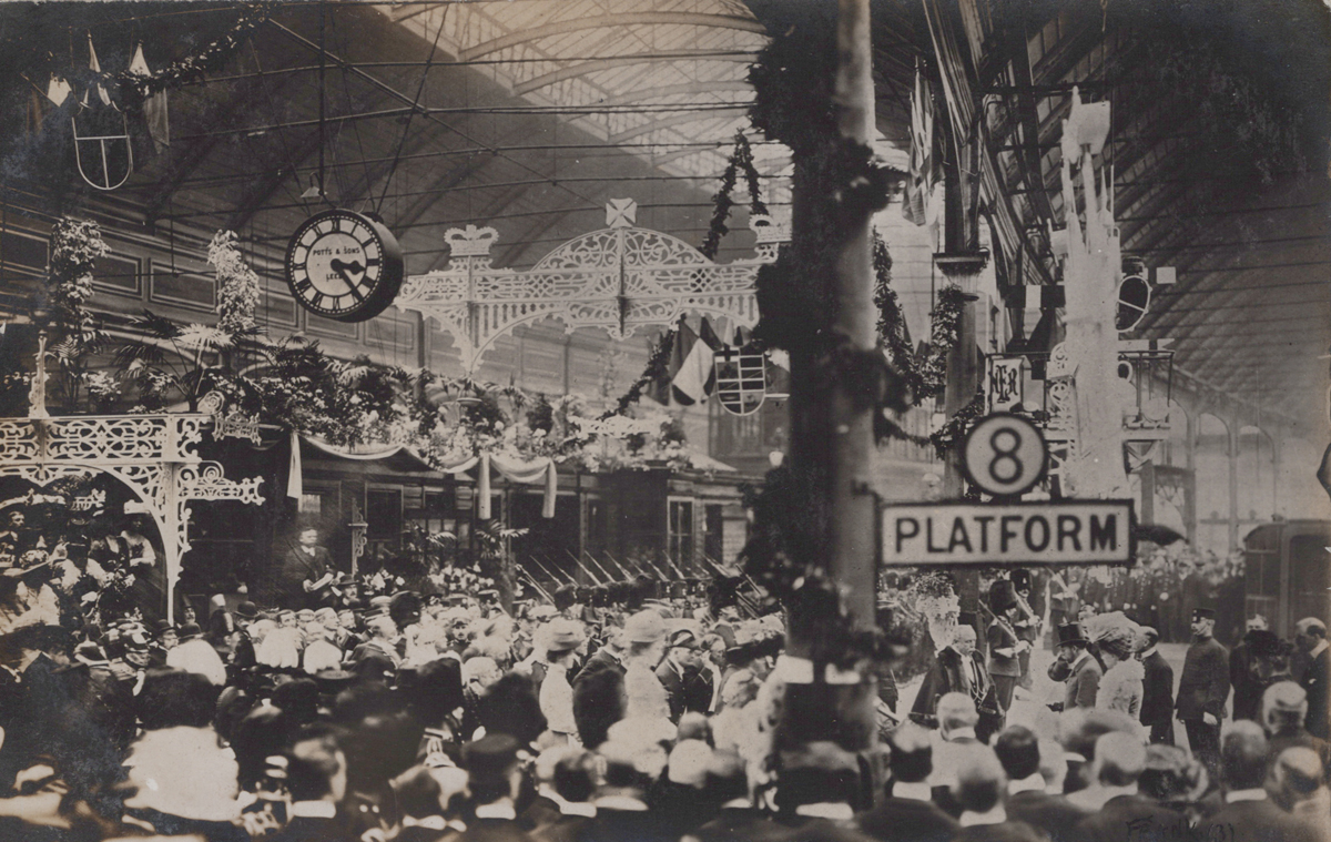 A collection of approximately 171 postcards, all British topographical views predominantly Nottinghamshire, including photographic postcards titled ‘Titchfield Park, Mansfield’, ‘Beastmarket Hill, Nottingham’, ‘Coronation Decorated Car’, ‘Royal Tweed Bridge, Berwick’, ‘New High Level Bridge, Newcastle’, ‘Mitford’, ‘May Day Empingham’, ‘The Rise, Stables, Ashwell Park’, ‘Pride Hill, Shrewsbury’, ‘High Street, Newport’, ‘The Castle, Shrewsbury’, ‘John Maddock & Co Ltd, Oakengates, 1948’ and another of a royal visit to a train station, possibly Central Station, Newcastle-upon-Tyne.