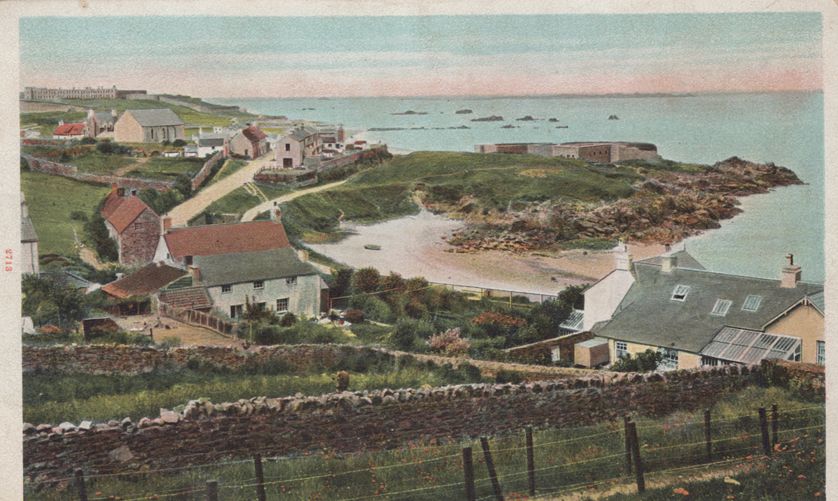 An album containing approximately 251 postcards of the Channel Islands, including postcards from the Peacock series, Philco Series, Salmon Series, and the Wrench series.
