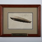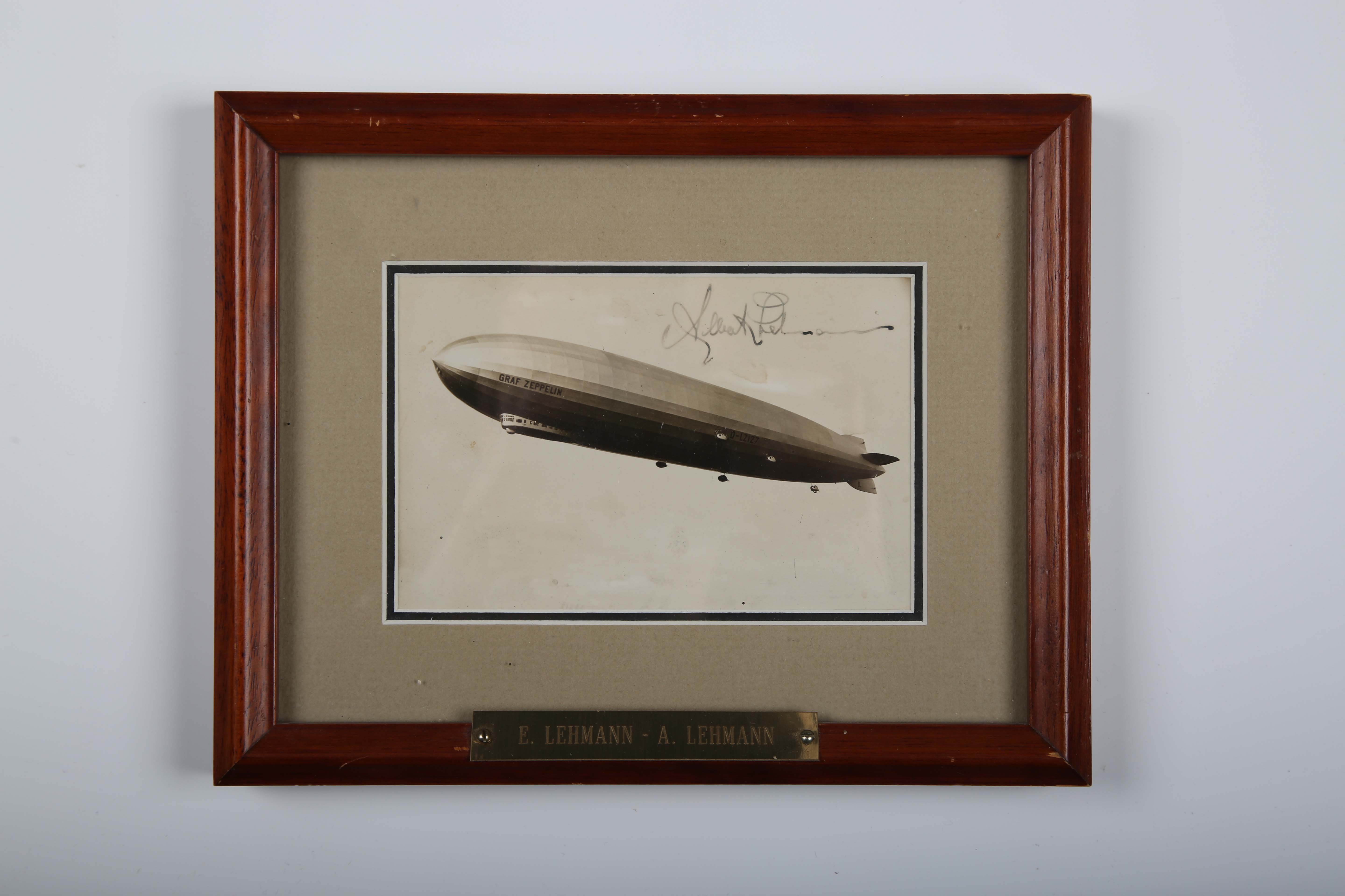 AVIATION. A photographic postcard of the Graf Zeppelin autographed by Ernst August Lehmann, the reverse with address and postmarks for Luftpost and New York 1929, as well as a commemorative inkstamp for the first Zeppelin trip to America, framed and glazed, overall 18cm x 23cm Note: Lehmann (1886-1937) was a German aeronautical engineer and pilot who accompanied Hugo Eckener on the first Zeppelin trip to the United States of America.