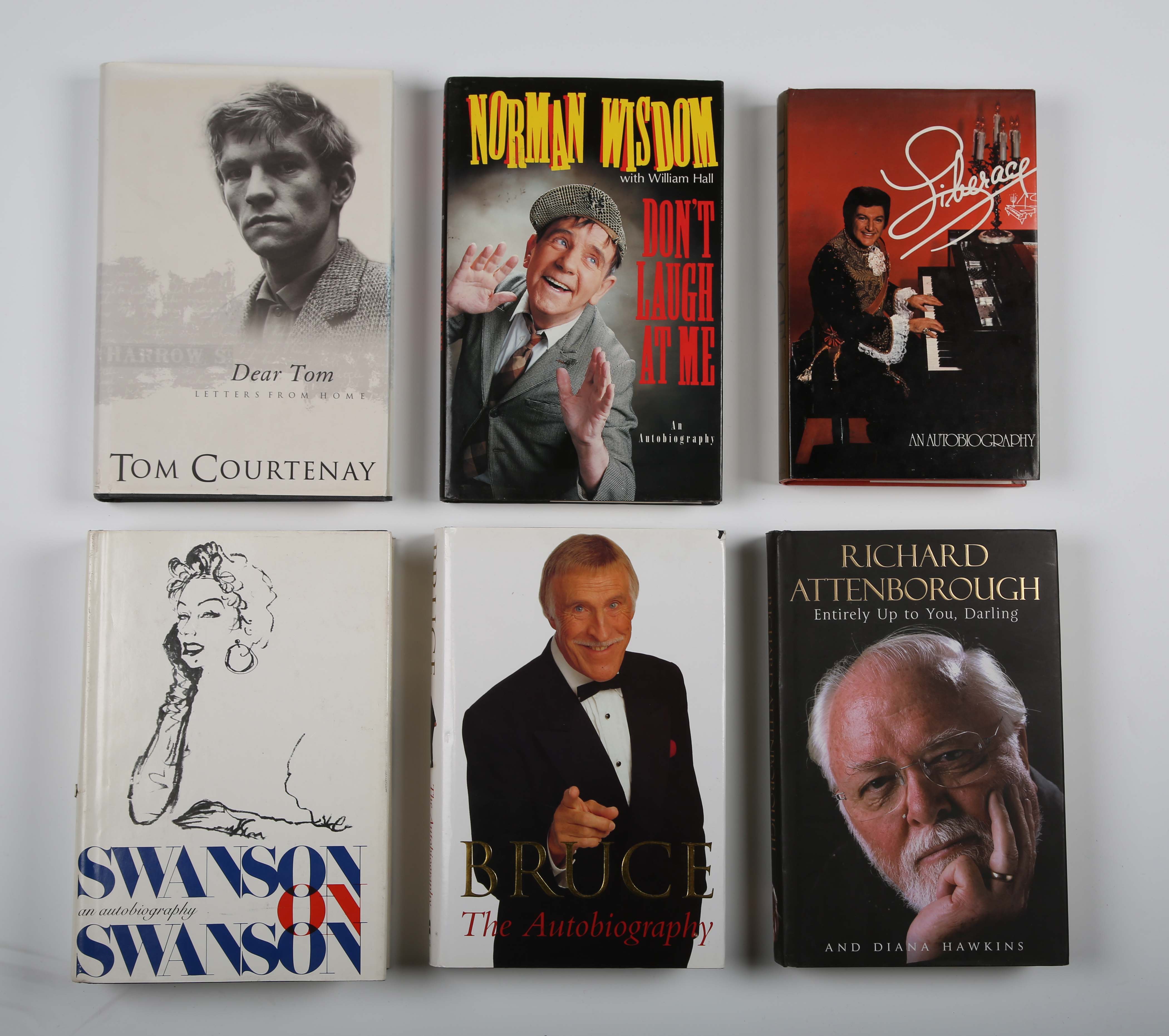 AUTOGRAPHS. A collection of 19 signed modern first editions, including ‘Dear Tom, Letters from Home’ signed by Tom Courtenay, as well as others signed by Liberace, Douglas Fairbanks, Richard Attenborough, Bud Flanagan, and Lulu.