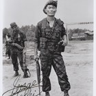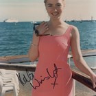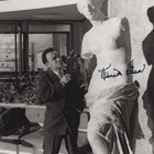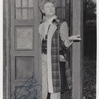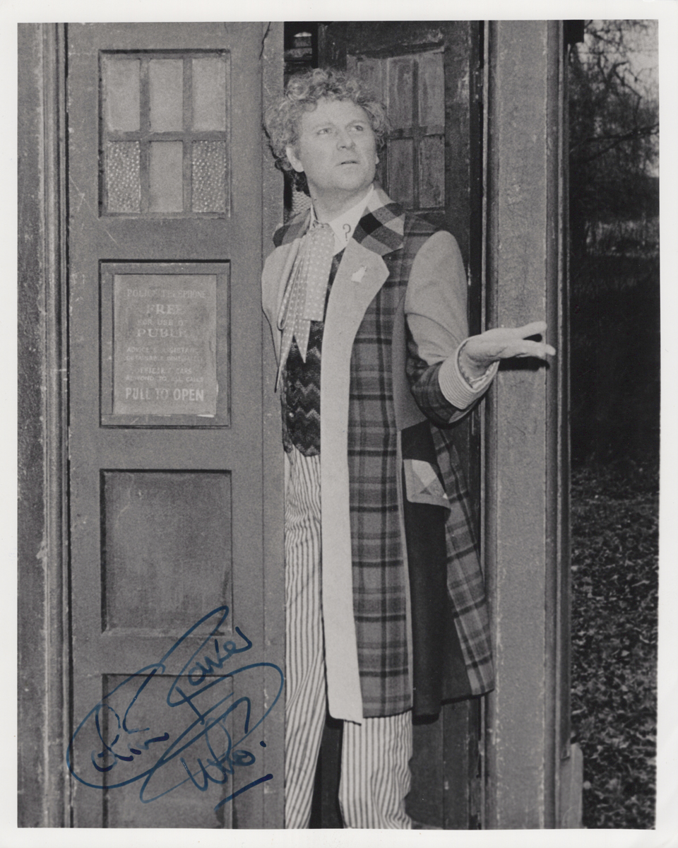 AUTOGRAPHS. A collection of approximately 200 signed photographs, including Colin Baker (in the role of Dr Who), Tim Curry, Anjelica Huston, Sylvester McCoy, Kathy Bates, Frank Gorshin, Eartha Kitt, Kenneth Connor, Bobby Darin, Helena Bonham Carter, Michael Douglas, Phil Silvers, Ralph Richardson, Hugh Grant, Moira Shearer, Woody Allen, Tom Baker, George Takei, Kate Winslet, Barbara Windsor, Dizzy Gillespie, Amanda Barrie, Liz Frazer, and another signed by Yul Brynner and Virginia McKenna, most 25cm x 20cm.