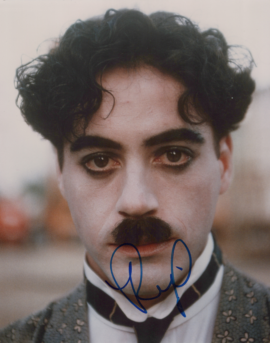 AUTOGRAPHS. A collection of approximately 200 signed photographs, including Robert Downey Jr, Gerard Depardieu, Morgan Freeman, Deanna Durbin, Edward de Souza, Bob Denver, Virginia Grey, Andy Garcia, Michael Gambon, Robert Beatty, Alan Bates, Sean Bean, Faye Dunaway, Geena Davis, Frances Day, William Dafoe, Kirk Douglas, Neil Dickson, Richard Gere, and another signed by both Judi Dench and John Neville, most 25cm x 20cm.