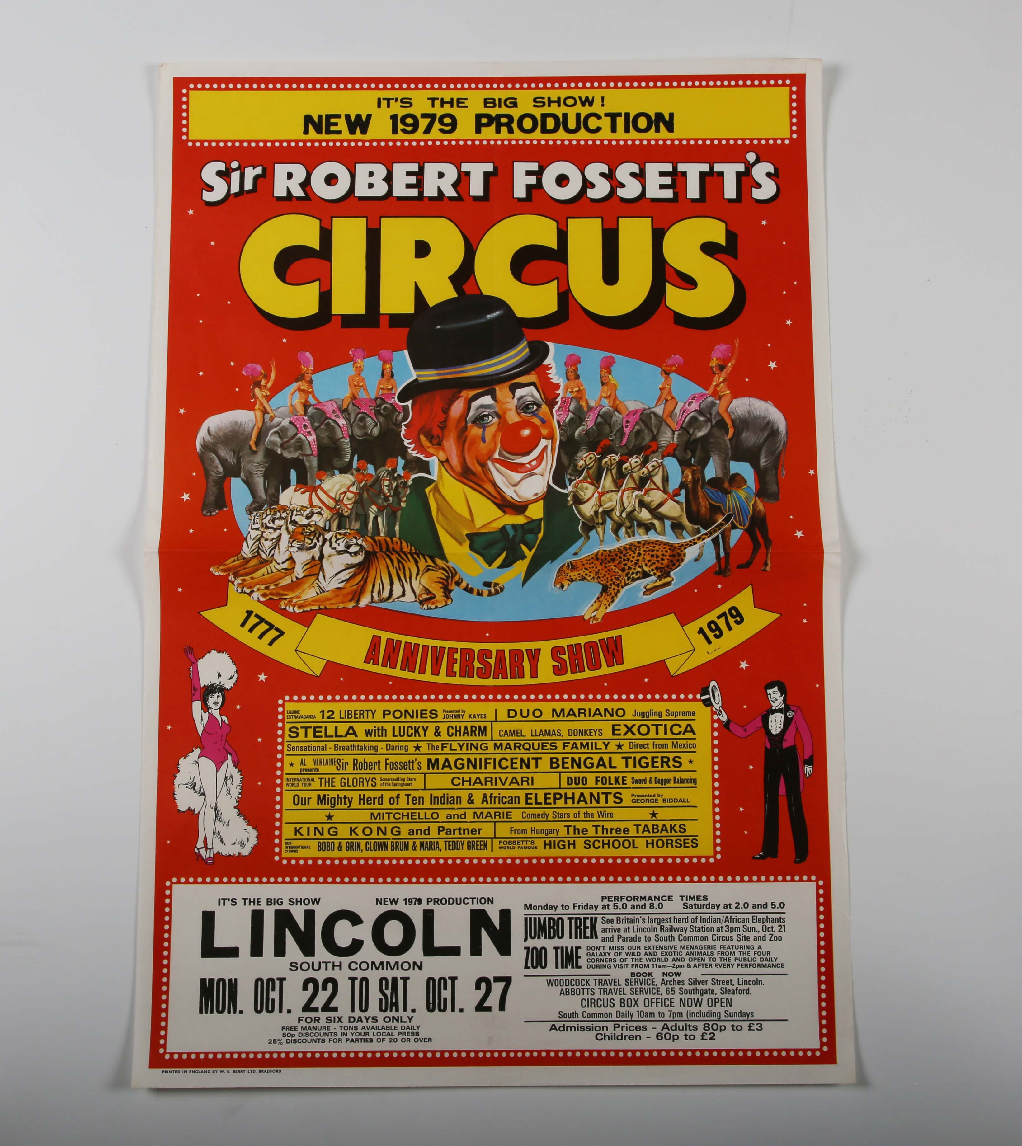 POSTERS. A collection of 15 ‘Sir Robert Fossett’s Circus and Zoo’ advertising posters, circa 1970s, 75.5cm x 51cm and smaller.