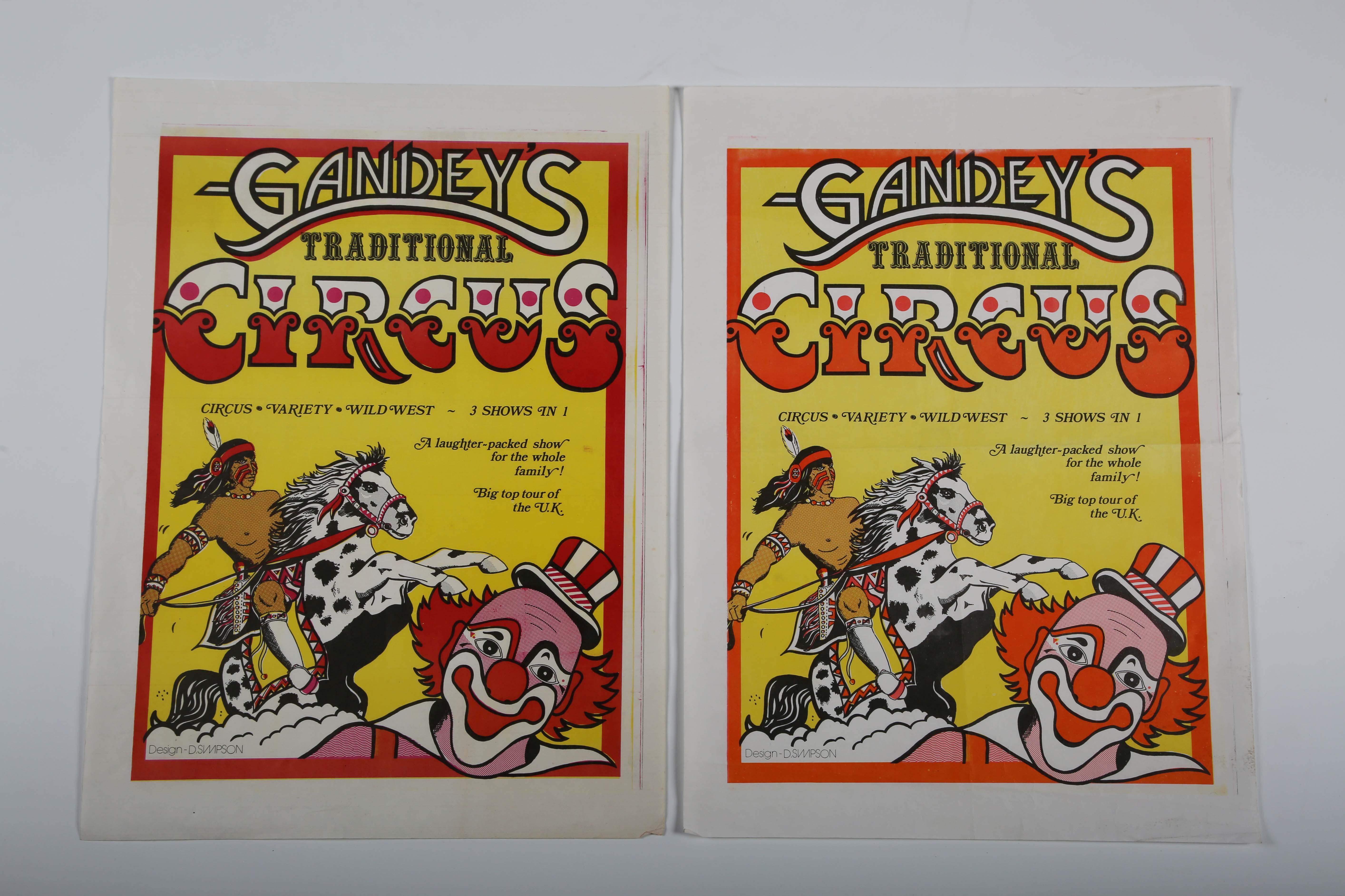 POSTERS. A group of seven circus advertising posters, including ‘Gandey’s’, ‘Bertram Mills’ and ‘Circus Hoffman’, various sizes.