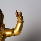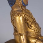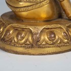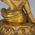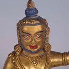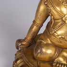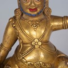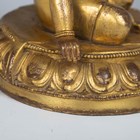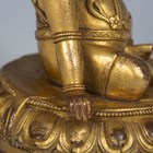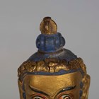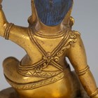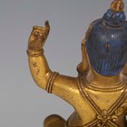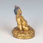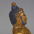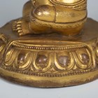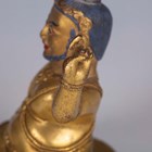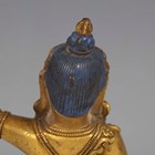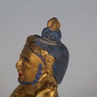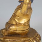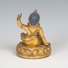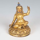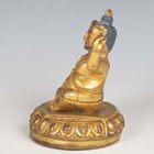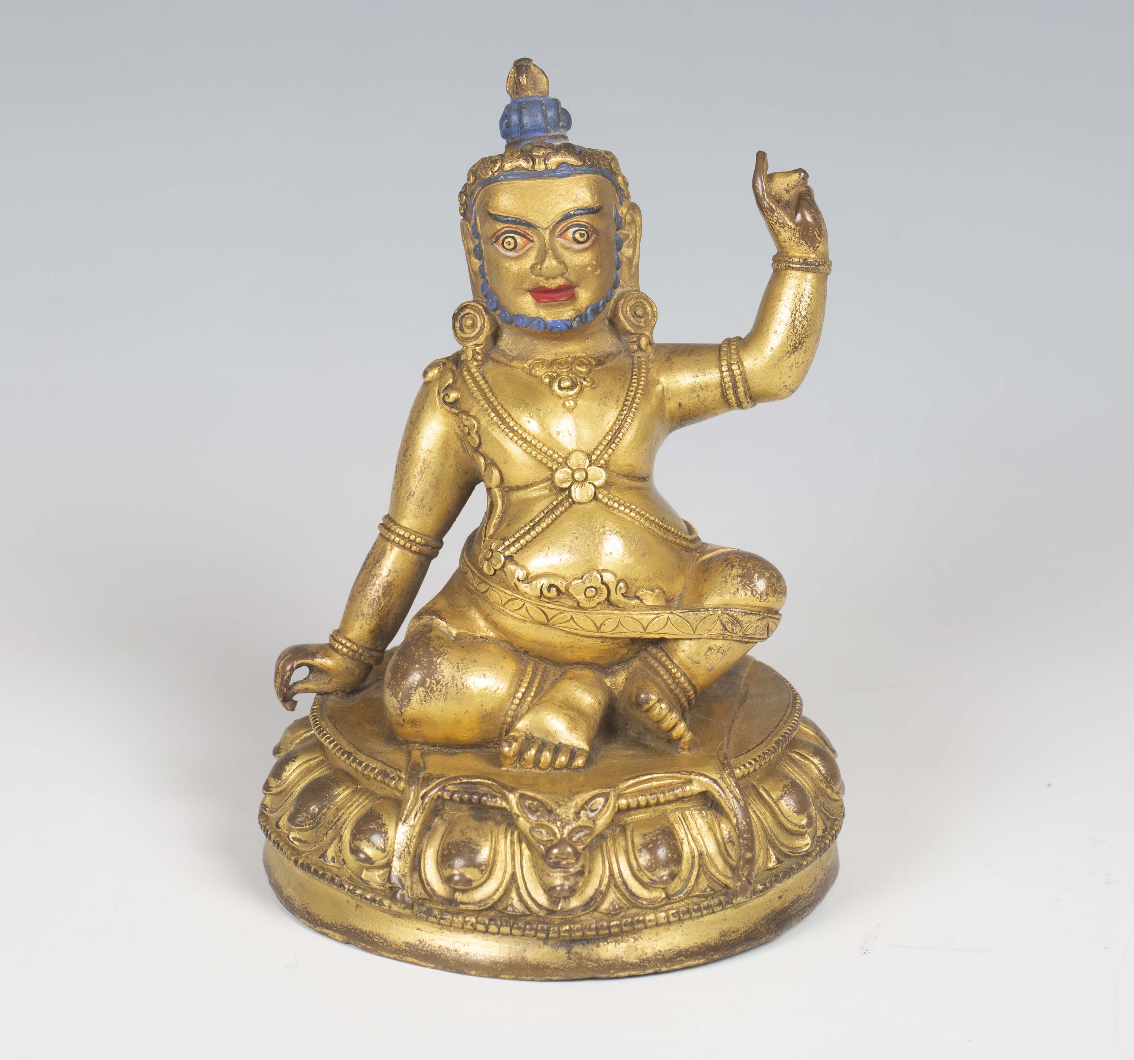 A Tibetan gilt bronze figure of Mahassidha-Virupa, 17th/18th century, modelled seated in lalitasana on an antelope skin covered circular lotus base, blue and red detail to hair and facial features respectively, height 13.1cm. Provenance: the Alain Presencer Collection. Note: Virupa was an 8th-9th century Indian mahasiddha and yogi, and the source of important cycles of teachings in tantric Buddhism.